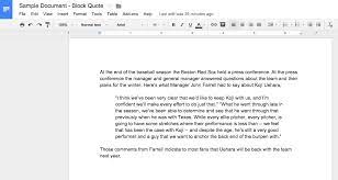 Select the text and click the increase indent icon (see image, right). Block form is used for long quotations (4 or more lines), in which case quotation marks are omitted because the block form substitutes for quotation marks. Provide an introduction to the quote. How to handle short and long quotations, shorten quotations, and when to paraphrase instead of quoting. Block quotations should be double spaced and indented 10 spaces from your left margin.